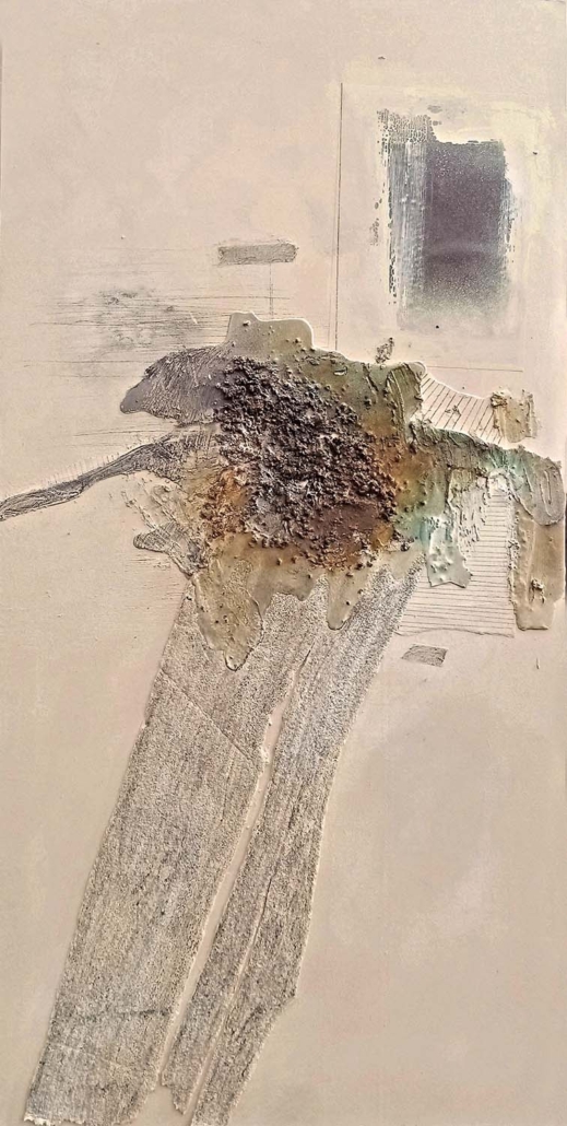 Se utilizan, también, materiales encontrados tales como clavos, utensilios metálicos y restos de objetos que se relacionan y combinan en la tela con parafina, pintura acrílica y gráfito. Es una investigación donde pretendo recrear espacios pictóricos con un fuerte carácter poético-visual en el que los objetos encontrados cobran un nuevo sentido. Esta serie es una búsqueda de un lenguaje propio y personal donde me intereso por la relación existente entre la tela, el soporte y la pintura. Una búsqueda sobre nuevos lenguajes y sobre cómo entender la pintura hoy en día.